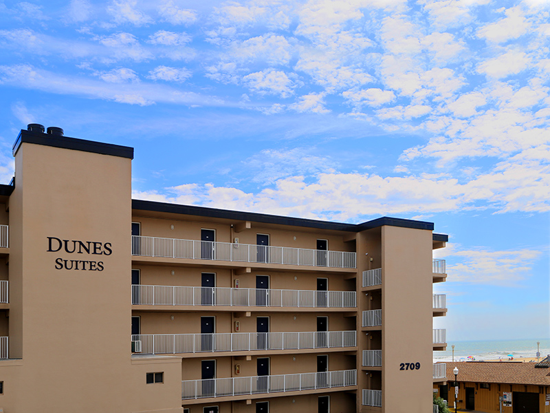 Dunes Suites offers another inviting family-friendly oceanfront hotel experience, with private balconies and sweeping views of the ocean and expansive Atlantic coastline.